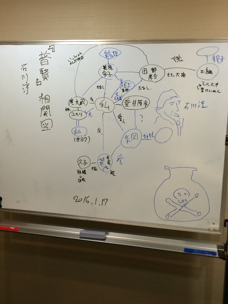 意外と人物関係が複雑だよね、ということで、ホワイトボードに人物相関図をかきだしてみたり。