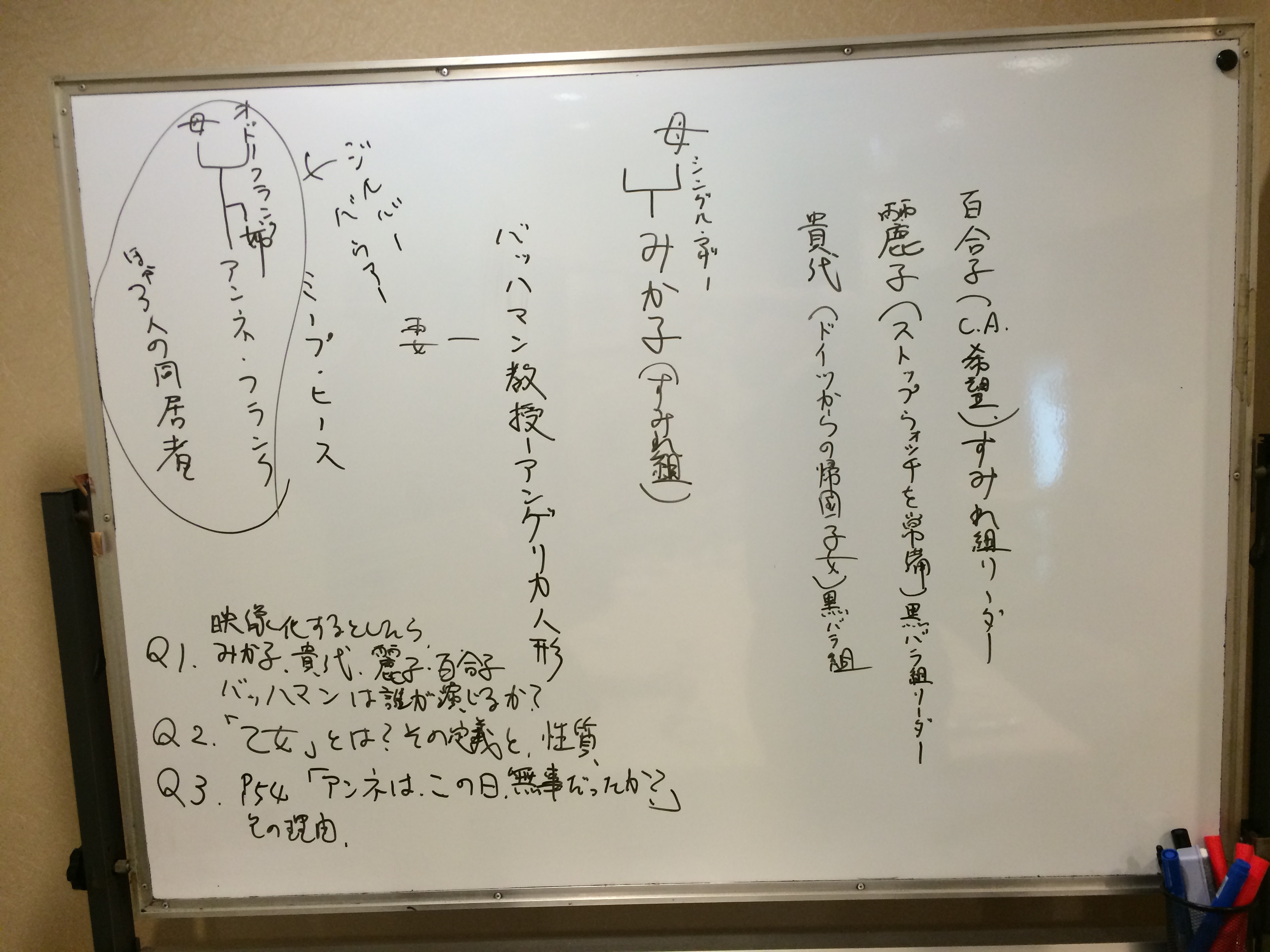 Q1、映像化するとしたら、みか子、貴代、麗子、百合子、バッハマン教授は誰が演じるか?